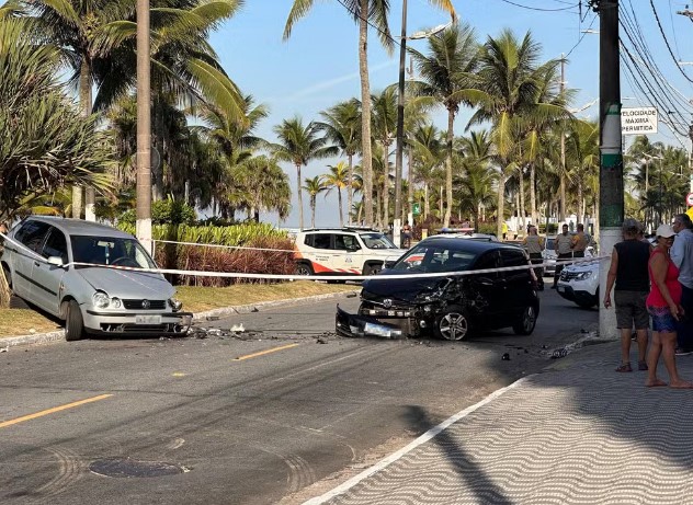 O acidente aconteceu por volta das 7h, na orla da praia, na Avenida Presidente Castelo Branco. Segundo informações, o carro preto avançou para a faixa contrária, batendo de frente com o veículo prata, que vinha na direção oposta.