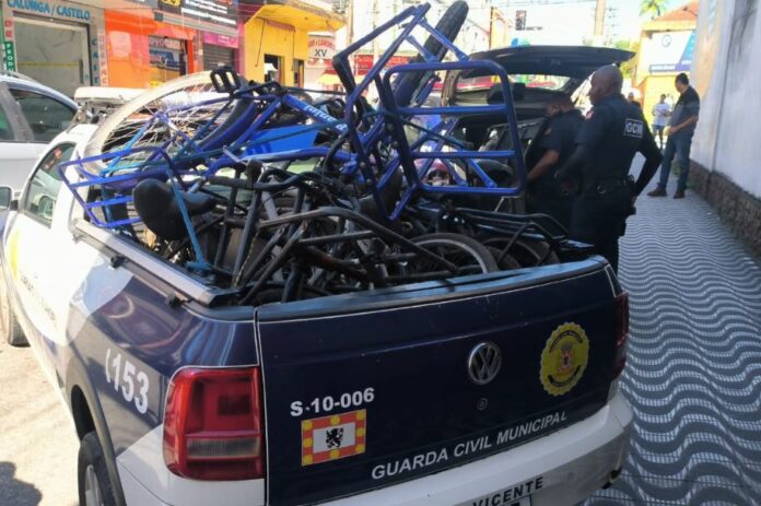 O estabelecimento era mantido por duas pessoas e contava com um aparelho celular constatado como produto de roubo na cidade de Santos em 2023, bicicletas sem comprovação de procedência e fios pertencentes à marca Vivo, além de eletrodomésticos e demais itens sem comprovação de procedência.